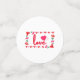 This confetti showcases the word “Love” in a unique print font with red letters pink outline inside of a rectangular styled design with red and pink themed hearts, roses and strawberry style heart on two corners in this Valentines Day theme. Each pack contains 60 pieces printed on standard semi-gloss paper 110 lb weight with double side full colour printing. Great any occasion from birthdays, weddings, anniversaries any other milestone moments.