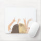 A lovely mouse pad with the watercolor painting for two friends spelling out LOVE with their hands