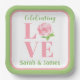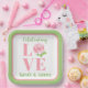 LOVE Watercolor Rose NAME Bridal Green Paper Plate