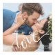 Showcase five photos of your wedding (engagement, honeymoon, etc) in a keepsake photo cube for yourself or as a gift for family members. The top photo features the word LOVE in a white handwritten script font and a place to add your name and wedding date. The sides of the cube allow for easy upload of your photos in a full-bleed design.