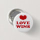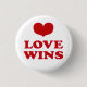 NewParkLane - Fight Racism & Prejudice with this colorful button with 'Love Wins' quote in bright red typography with a hot pink stroke and a big red heart.