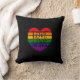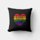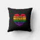 Gay pride throw pillow features rainbow color heart with "love wins" overlay and black background.