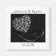 Word art features "Love" in a variety of fonts and sizes all in a heart shaped balloon. Black background with white text. Personalise with name, date or other special message. Great for Save the Date or Wedding favours