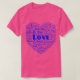 A blue word cloud in the shape of a heart, filled with words related to love and affection.