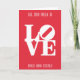 Red and white "All you need is LOVE hugs and kisses" card. for the loved one.