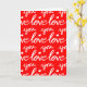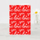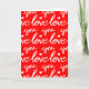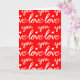 This blank greeting card features a pattern of hand written calligraphy words that say Love you in red and white, which is perfect for Valentine's Day or an Anniversary.