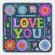Love You, colourful vintage design, Square Sticker