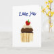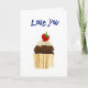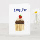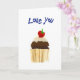 This romantic card has a cupcake design, made out of handpainted paper collage. The chocolate cupcake is decorated with chocoalte frosting and cream and topped with strawberry. Blank inside for your own message.