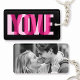 This "Love You" acrylic keychain features stylish typography and can be personalized with a favorite photo. It features overlapping, semi-opaque letters, forming bold, geometric shapes. Perfect for Valentine's Day, a birthday, a wedding anniversary, or just because! This modern design makes a unique keepsake gift, and is a lovely choice for a girlfriend, boyfriend, husband, wife, daughter, or best friend. Printed template colors: black, light pink and pink.