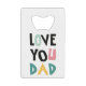 Can't find a bottle opener just when you are about to open that special bottle? Why don't have it in your bag or in your wallet and always be prepared for a party? This practical yet beautiful credit card bottle opener is from our Cool Text collection. This design in particular was produced digitally thinking of all the dads out there who should be celebrated every day.