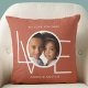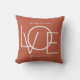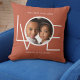 This We Love You Dad Photo Pillow is decorated with the word LOVE in white typography on a rust terracotta background.