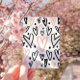 This valentine card features a cute bunny illustration paired with a custom script "love you forever" and your personalised monogram below in a decorative font. The back side has a white background with artistic hearts in a two-toned seamless pattern.