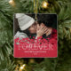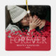 Cute couple valentine ornament featuring a photo of you and your partner, a modern red love heart design, the saying "i will love you forever", your names, and the year.