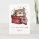 Celebrate love with this adorable Love You Fur-Ever folded Valentine’s Day card featuring a cozy kitten nestled inside a gift box, surrounded by tiny hearts. The warm burgundy and red tones create a romantic yet playful feel, perfect for cat lovers who appreciate cute and heartfelt designs. The front text can be personalized with a name, making this card a truly meaningful keepsake. Inside, the message is fully customizable, allowing you to add your own words for a partner, spouse, or special someone. The back of the card features a subtle matching kitten detail, keeping the overall design clean and elegant. Ideal for Valentine’s Day, anniversaries, or simply reminding someone they are loved fur-ever.