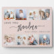 Give Grandma a gift she'll cherish. This photo collage plaque features eight of her favourite square photos of the grandkids, along with the message "Love You Grandma." The word "grandma" appears in elegant charcoal grey handwriting script with flourishes at the beginning and end on a blush pink background. Add the names of up to four grandchildren. An ideal gift for holidays, birthdays or grandparents' day.