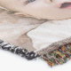 A quality printed throw has its advantages. This is a much finer weave throw than its loopier cousins, and though lighter, it is worth the investment for custom room accessorizing. The back is much prettier than the typical brown, and the fringe on the long sides very vivid, the selvage nicely done. Before photographing, I washed the throw in cold water, delicate, with a thicker woven throw the same size. On tumble dry low, this throw was dry in half the time as the other. This is a very practical quality if you use throws for furniture covers or to wrap up in frequently. The sleekness of the fabric makes it a great layer for accenting or protecting without the feeling of sitting on too much stuff. Perfect for napping or when you feel a light chill coming on. The color printing is beautiful and on this fabric, matched the design and color of my Photoshop image. This is an advantage for blending room fabrics and colors. The fringe on the short sides prints the colors from the design image and therefore varies from the side fringe. I streaked a white fractal line through the plaid pattern to give the illusion of weaving. This printed as crisp as an illusory thread, and put some white in the short side fringe, showing another advantage of print vs loomed- for artistic purposes, line lines, detail, and color integrity can be planned and preserved. My loomed throws have color limitations and more of a needlepoint texture. Print throws reproduce an exact image. The throw felt a little stiff straight out of the package, but this went away in the first delicate wash. Of course I searched the wash water for ink or bleeding and there was none.