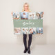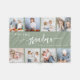 Give Grandma a gift she'll cherish. This photo collage blanket features eight of her favourite square photos of the grandkids, along with the message "Love You Grandma." The word "grandma" appears in elegant white handwriting script with flourishes at the beginning and end on a sage green background. Add the names of up to four grandchildren. An ideal gift for holidays, birthdays or grandparents' day.