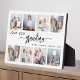 Give Grandma a gift she'll cherish. This photo collage plaque features eight of her favourite square photos of the grandkids, along with the message "Love You Grandma." The word "grandma" appears in elegant black handwriting script with flourishes at the beginning and end on a white background. Add the names of up to four grandchildren. An ideal gift for holidays, birthdays or grandparents' day.