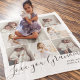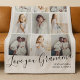 This custom photo collage blanket design is a heartfelt tribute perfect for gifting to a cherished grandma. Featuring a grid layout of nine personalised photo slots, it beautifully showcases treasured family moments in a soft, modern aesthetic. The bottom of the blanket is adorned with elegant script that reads "Love you Grandma" alongside a customisable message from the grandchildren, adding a personal and emotional touch. Ideal for Mother's Day, birthdays, or special occasions, this sentimental design turns warm memories into a cosy keepsake, celebrating love, connection, and the special bond between grandmother and grandkids.