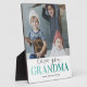 Personalised grandmother photo plaque featuring a stylish white background that can be changed to any colour, a precious photo of her grandchildren, the saying "love you grandma", and their names.