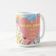 Personalised grandma coffee mug in a cute pink wildflower heart shape, the words "we love you grandma", and the grandchildren's names. It can be changed to any relation!