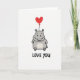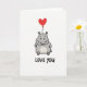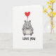 Love You Hippo Heart Balloon Card