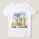 Cute watercolor llama with decorative details on the head. The background is a desert landscape with cacti and sand. Cute text, Love you,