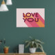 Love You Love Quote Poster. Modern design with a retro colour palette I Love You poster, makes a perfect gift for your girlfriend, boyfriend, or special someone. The pink, orange, and yellow stripes make the letters pop with an uplifting message. Give this present for Valentine´s Day or as a home decor surprise for your loved one.