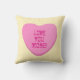 Love You Love You More Pink Candy Hearts on Yellow Cushion
