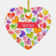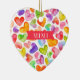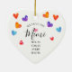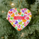 Mimi Christmas ornament design featuring a field of colourful watercolor hearts. The back of our ornament can be personalised with grandchildren names.