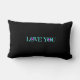 Love You More, Aqua Pink Hearts on Black Lumbar Cushion