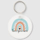 Love You More Rainbow Heart Blue Peach Key Ring