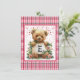 Send heartfelt Valentine’s Day wishes with this adorable and fully customisable card featuring a sweet teddy bear holding a sign that says "Love You More," surrounded by soft pink roses and a charming heart pattern. The card’s back includes space for your personalised message or poem, perfect for expressing your love in a unique and meaningful way. The pink plaid border adds a touch of whimsy and elegance. Ideal for couples, friends, or anyone you hold dear. Customise the text, poem, and name to make it uniquely yours!