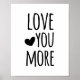 A sweet and trendy typography quote art print that says Love You More in a black and white lettered design.