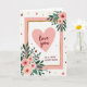 This card features a large soft pink heart centered inside a neat rectangular border, setting a gentle, affectionate tone ❤️. Inside the heart, the words “love you” sit in flowing lettering in a warm, darker pink that feels like a tender note left just for her. The border is a light pink band with a thin, slightly textured golden line just inside it, adding a cozy, keepsake touch. In the upper right and lower left corners, flower clusters lean into the frame as if reaching toward the heart, hinting at closeness and care. The blossoms blend blush, peach, and coral shades with deep green and teal leaves, with a few petals and stems spilling slightly beyond the edge 🌼. Along the lower right area, “TO A VERY DEAR NANA” appears in small uppercase letters in a darker pink, neatly aligned near the corner. The cream background is dotted with tiny gold circles and little red hearts scattered lightly across the space.