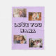 Celebrate Nana with a cosy fleece blanket featuring four cherished photos — two at the top, two at the bottom — and a loving “Love You Nana” message in the centre. Set against a soft purple background, this design is perfect for showcasing family memories, special moments, or grandkids' smiles. A thoughtful gift for birthdays, holidays, or just to say “I love you,” this blanket brings warmth and joy to any space.