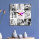 “Love you Nana.” She’s loving every minute with her grandkids. A playful, whimsical, stylish visual of colourful rainbow coloured bold typography and black handwritten typography overlay a soft, light pink heart and a white background. Add 8 cherished photos of your choice and customise the names and message, for the perfect modern, stylish, personalised photo collage wall clock she’ll always treasure. Choose black and white photos for an elegant look. (ADDITIONAL PHOTO TIP: Pre-crop your photos into similar shapes and/or have the subjects in the middle BEFORE uploading.) Choice of round or square shape, framed or unframed. A great keepsake gift for your grandma for Mother’s Day or her birthday.