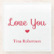Love you red heart personalised white glass coaster