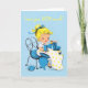 Cute kitschy vintage style valentines card, with blonde girl using a sewing machine. The card reads at the top "Love you SEW much"
