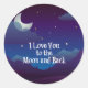 I love you to the moon and back, blue-indigo landscape with white crescent moon,
