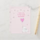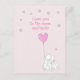 NewParkLane - Cute Postcard, featuring two sweet little rabbits with a hot pink heart shaped balloon, sitting down and staring at the stars, against a blush pink background. With text: 'I love you to the moon and back! All text styles, colours, and sizes can be modified to fit your needs.