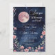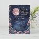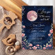 Imagine a captivating night sky adorned with twinkling stars, painted in a rich, deep blue hue. On this ethereal canvas, a delicate, blush-pink moon shines bright, radiating love and warmth. Delicately hand-painted watercolor flowers gently embellish the design, lending a touch of natural beauty to the invitation. The overall effect is simply enchanting, evoking feelings of tenderness and love.