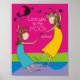 Love You To The Moon And Back art poster of two female best friends. Bright and colourful friends art.