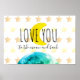Customizable "Love You to the Moon and back"star pattern background, yellow crescent moon and Earth.