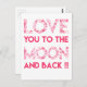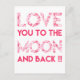 Love You to the Moon - Pink Hearts Typography Postcard