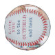 Personalised baseball with two photos and lovely baseball quote from kids. The wording reads "love you to the outfield and back" and is lettered in hatched print and typewriter text. The photo template is set up ready for you to add your pictures and the year. The design has a colour palette of grey, midnight blue and deep red. A personalised baseball is a great gift for father's day, birthdays, new baby keepsakes etc.