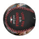 Celebrate the joy of fatherhood with this personalised photo baseball that features the touching phrase “love you to the outfield and back” in bold, playful lettering. With space for a heartfelt message and 2 cherished photos, this design transforms a simple gift into a powerful expression of love and appreciation. The dramatic black background and vivid red stitching give it a striking, sporty look, while the personal touches make it an emotional keepsake gift perfect for Father's Day, dad's birthday, Christmas, or just because. It’s a meaningful way to honour a dad who’s always gone the distance for his family.