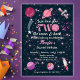 "Embark on a cosmic journey for your little one's second birthday! Our Twinkle, Twinkle Little Star Birthday Invitation is a celestial delight featuring a starry dark sky, pink planets, a cute satellite, and a whimsical space rocket. The heartfelt message 'We love you Two the moon and back' sets the tone for a celebration that's as special as your little princess. Personalize the card with the important details, and get ready to make memories that are truly out of this world!"
