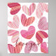 Lovely valentines hearts with 'Love You' typography. Each heart has been uniquely created with watercolor textures arranged on a white background with pink watercolor splatter.