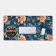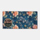 This desk mat showcases an elegant, timeless floral pattern with peach and ivory blossoms intertwined with delicate leaves and vines on a deep blue background.